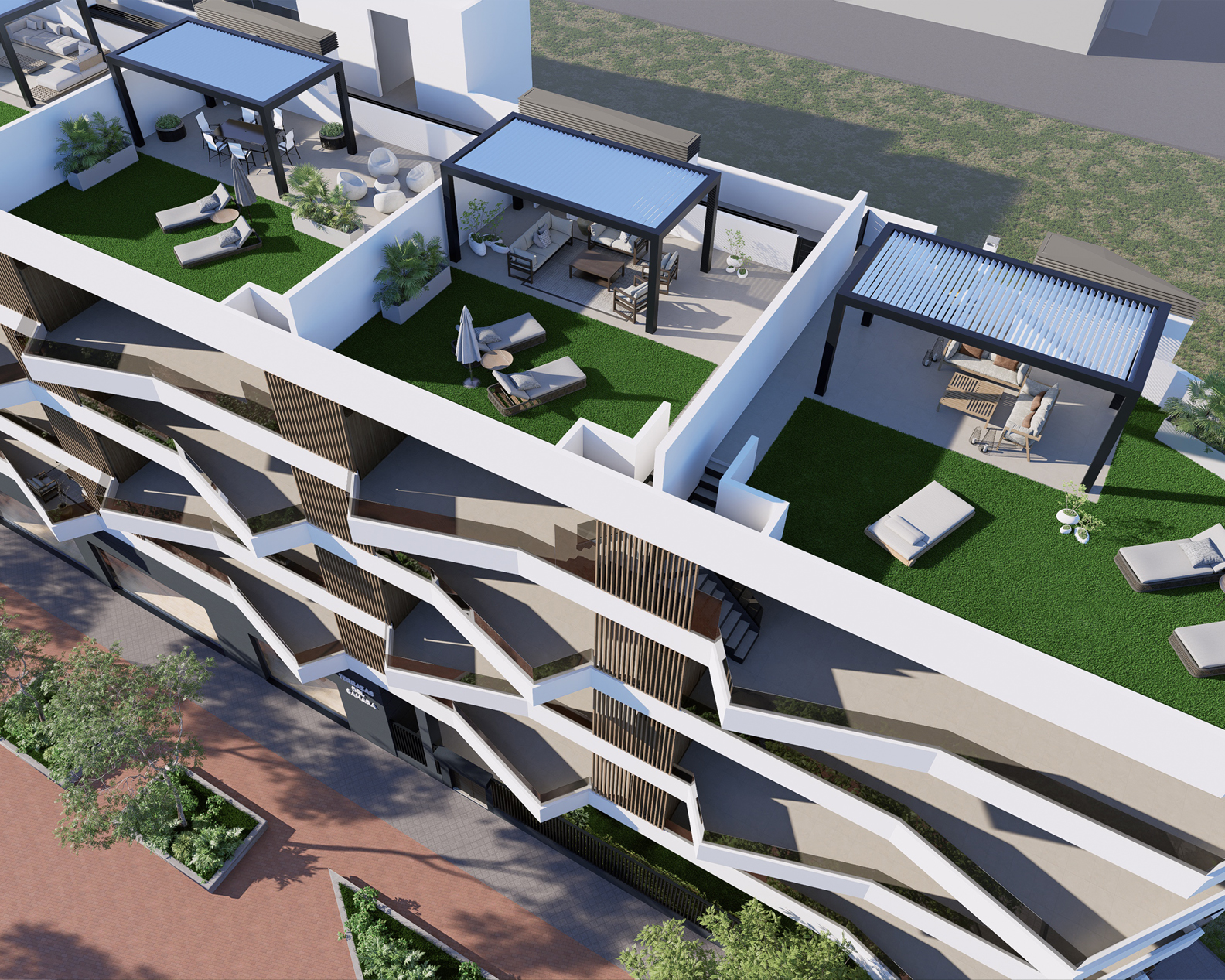 20 viviendas de 2 y 3 dormitorios con 2 baños y gran terraza. Plaza de garaje, trastero, gym, salón social y piscina